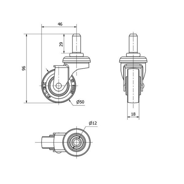 Rueda goma giratoria Alex diametro 50 mm. modelo 1-0298