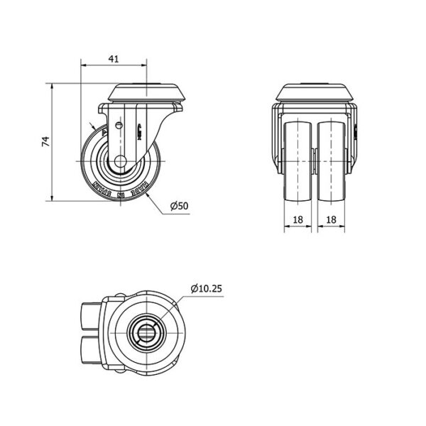 Rueda goma giratoria Alex diametro 50 mm. modelo 1-0397 EAN 8422202103976