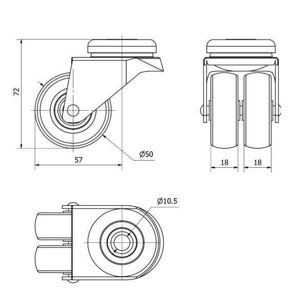 Rueda goma giratoria Alex diametro 50 mm. modelo TW0105