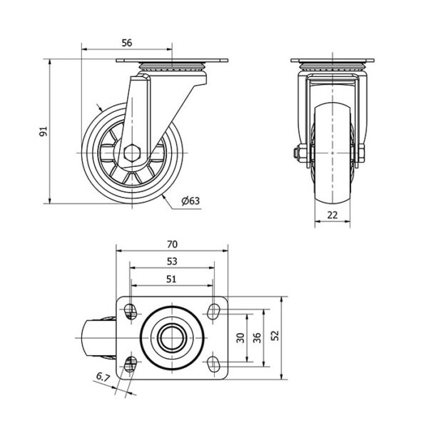 Rueda goma giratoria Alex diametro 60 mm. modelo 1-0781