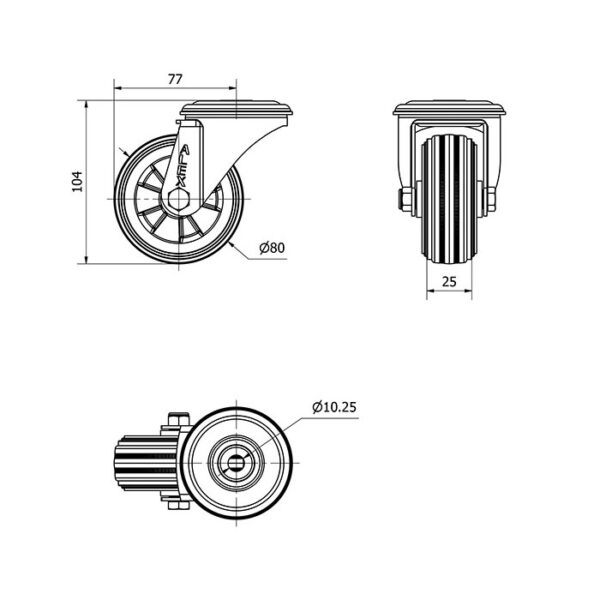 Rueda goma giratoria Alex diametro 80 mm. modelo 2-1338