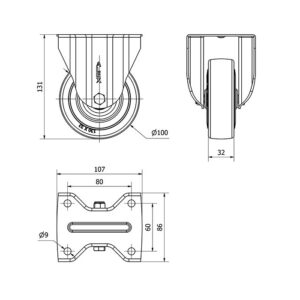 Rueda goma giratoria Alex diametro 80 mm. modelo 2-1404