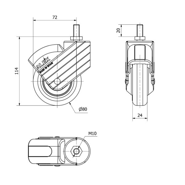 Rueda goma giratoria Alex diametro 80 mm. modelo 2-3321