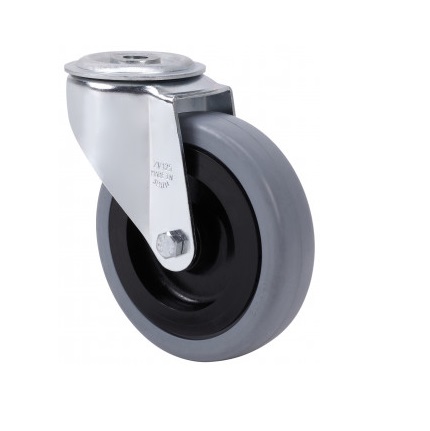 La serie de ruedas Alex ZV INOX-PGA: son ruedas de goma negra natural, con todos sus elementos de acero inoxidable (AISI-304), indicadas para soportar cargas hasta 135 Kg. Se utilizan en exteriores, carros de transporte en alimentación, comedores, restaurantes, empresas de alimentación, maquinas de embalajes, cintas transportadoras, construcciones inoxidables, contenedores y jaulas de transporte. PGA: Rueda suave y silenciosa. No mancha el suelo.