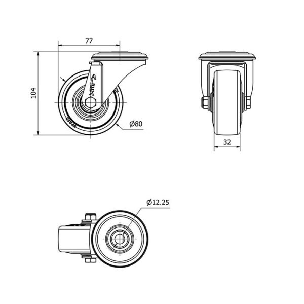 Rueda goma giratoria Alex diametro 80 mm. modelo 2-4138