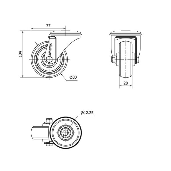 Rueda goma giratoria Alex diametro 80 mm. modelo 2-4142