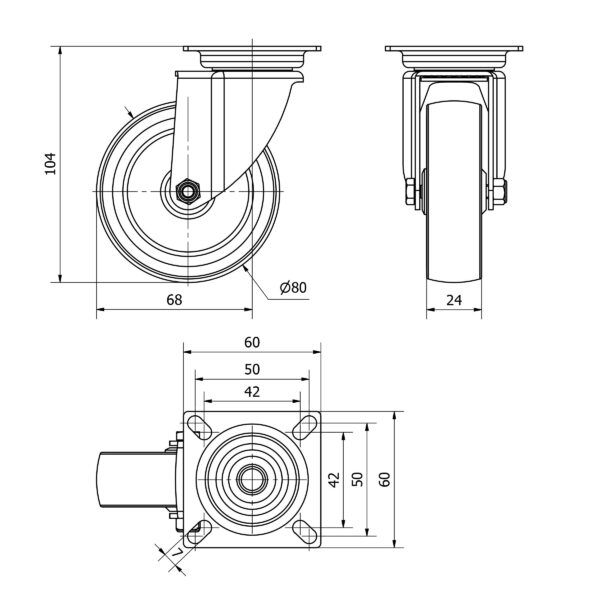 Rueda goma giratoria Alex diametro 80 mm. modelo TW0231