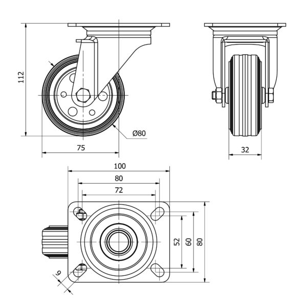 Rueda goma giratoria Alex diametro 80 mm. modelo TW0268
