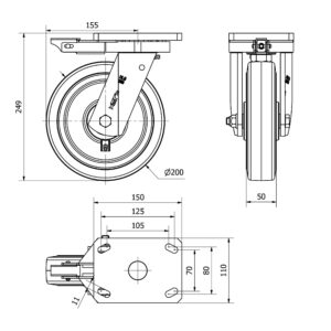 Rueda goma giratoria con bloqueo direccional Alex diametro 200 mm. modelo 2-3357