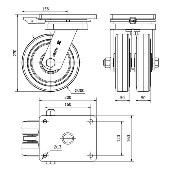 Rueda goma giratoria con bloqueo direccional Alex diametro 200 mm. modelo 2-3826