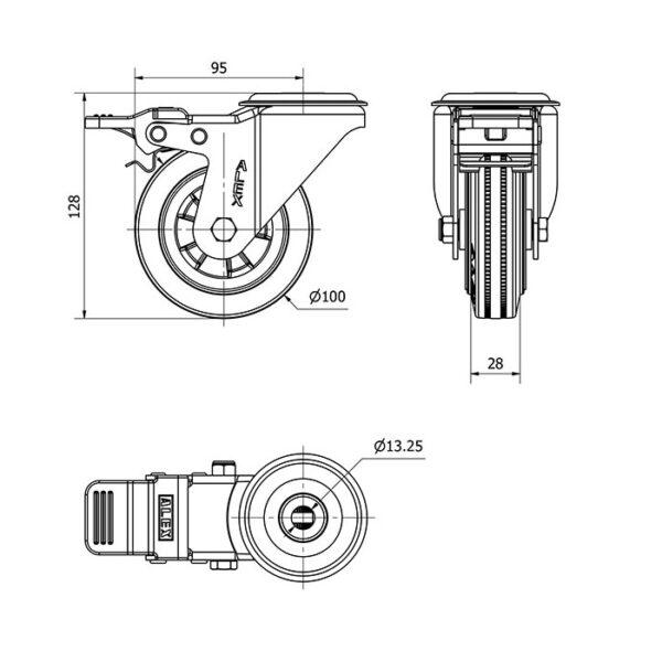 Rueda goma giratoria con freno Alex diametro 100 mm. modelo 2-1349