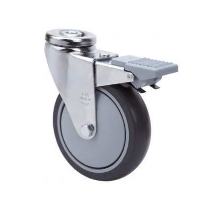 La serie de ruedas Alex A-PGAIB son ruedas con núcleo de poliamix y banda de goma gris termoplástica, indicadas para soportar cargas hasta 100 Kg.. Se utilizan en salas de operaciones, quirófanos, camas, usos hospitalarios y restauración. PGAIB: Silenciosa y absorbe las vibraciones. No dejan huella en los pavimentos. Fácil desplazamiento.