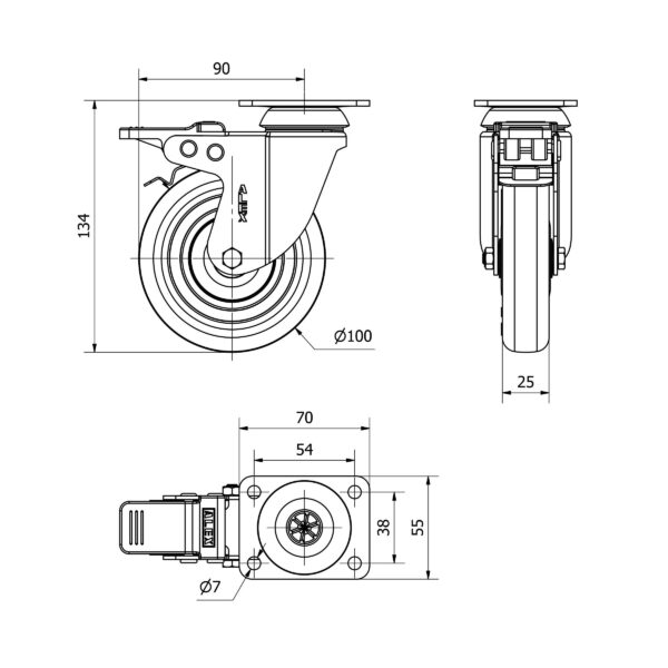 Rueda goma giratoria con freno Alex diametro 100 mm. modelo 2-2817