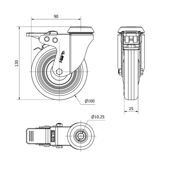 Rueda goma giratoria con freno Alex diametro 100 mm. modelo 2-3048