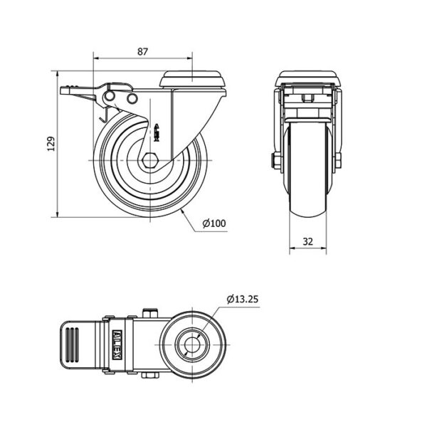 Rueda goma giratoria con freno Alex diametro 100 mm. modelo 2-4606