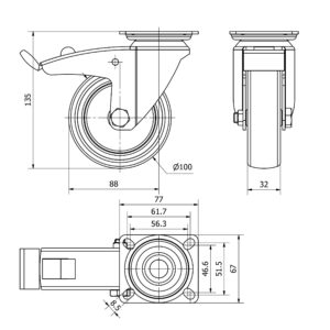 Rueda goma giratoria con freno Alex diametro 100 mm. modelo TW0071