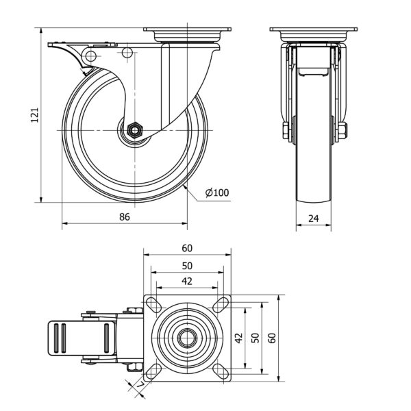 Rueda goma giratoria con freno Alex diametro 100 mm. modelo TW0240