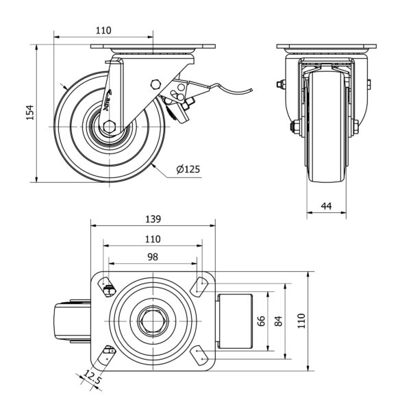 Rueda goma giratoria con freno Alex diametro 125 mm. modelo 2-3708