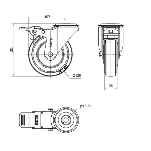 Rueda goma giratoria con freno Alex diametro 125 mm. modelo 2-4461