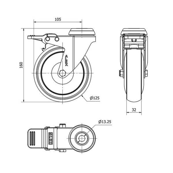 Rueda goma giratoria con freno Alex diametro 125 mm. modelo 2-4608