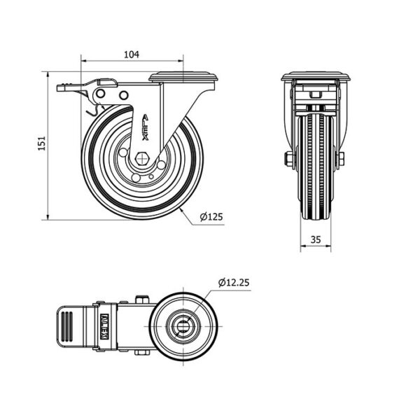 Rueda goma giratoria con freno Alex diametro 125 mm. modelo 2-4842