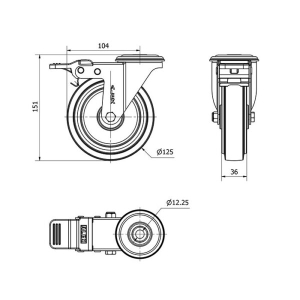 Rueda goma giratoria con freno Alex diametro 125 mm. modelo 2-4867