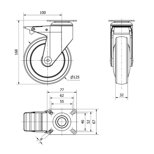 Rueda goma giratoria con freno Alex diametro 125 mm. modelo 4-1557