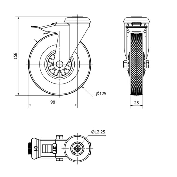 Rueda goma giratoria con freno Alex diametro 125 mm. modelo TW0096
