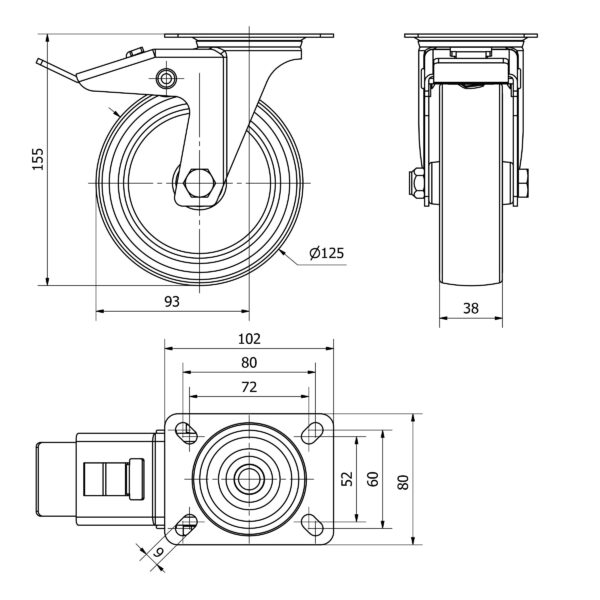 Rueda goma giratoria con freno Alex diametro 125 mm. modelo TW0228 EAN 8422202002286