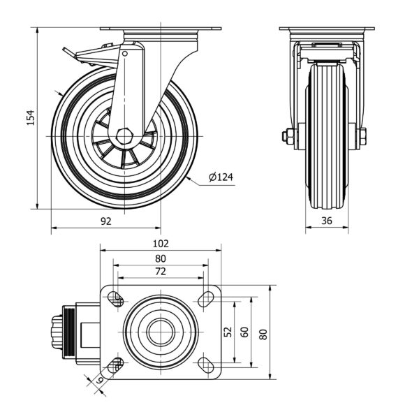 Rueda goma giratoria con freno Alex diametro 125 mm. modelo TW0265