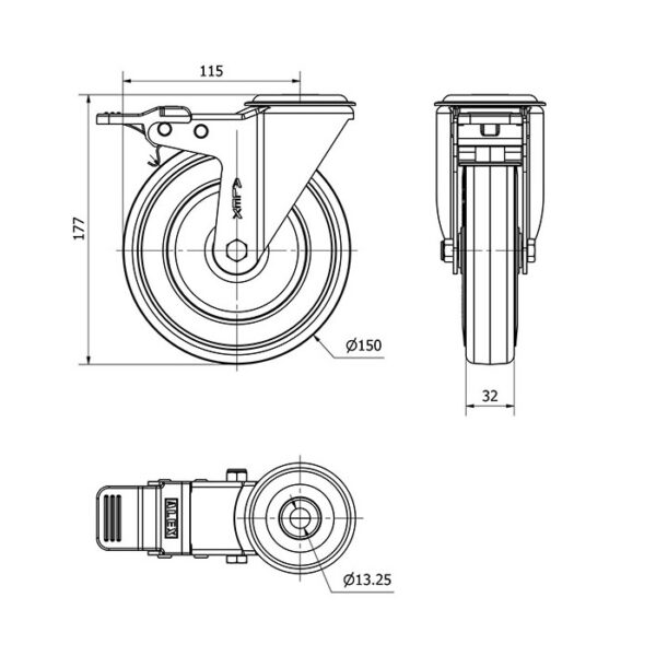 Rueda goma giratoria con freno Alex diametro 150 mm. modelo 2-4351