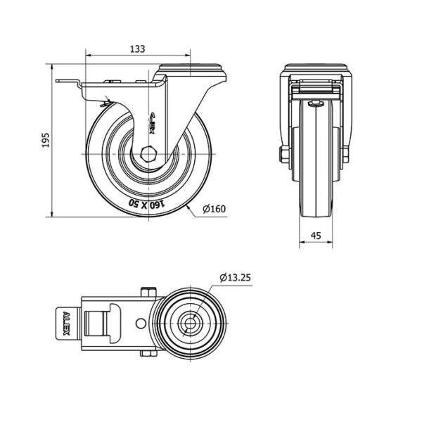 Rueda goma giratoria con freno Alex diametro 160 mm. modelo 2-4467