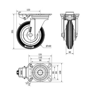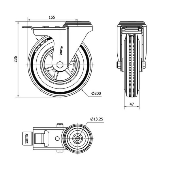 Rueda goma giratoria con freno Alex diametro 200 mm. modelo 2-3416