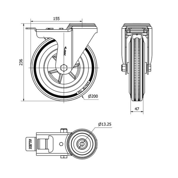 Rueda goma giratoria con freno Alex diametro 200 mm. modelo 2-3426