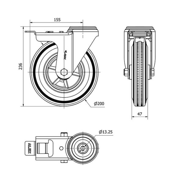 Rueda goma giratoria con freno Alex diametro 200 mm. modelo 2-4752