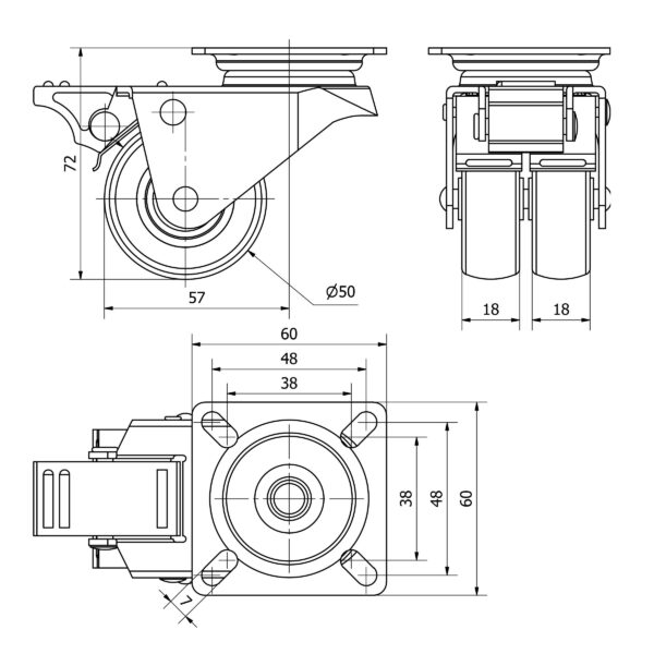 Rueda goma giratoria con freno Alex diametro 50 mm. modelo TW0103 EAN 8422202001036
