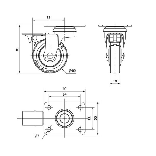 Rueda goma giratoria con freno Alex diametro 60 mm. modelo 1-0549