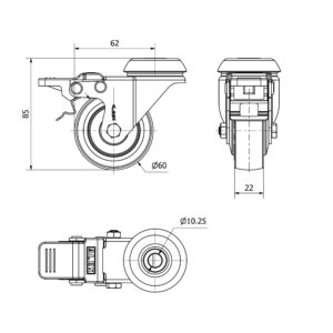 Rueda goma giratoria con freno Alex diametro 60 mm. modelo 2-4509