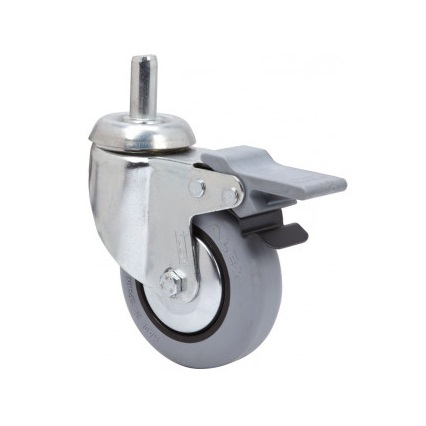 La serie de ruedas Alex BH-PGI son de goma gris, indicadas para soportar cargas hasta de 70 kg. Se utilizan en expositores, muebles, estanterías, taburetes, percheros, carros de hostelería, ebanisterías, stands, carros de limpieza, mesas de ordenador, pequeño mobiliario, etc.; ya que no rallan ni dejan huella en el suelo y son muy silenciosas.