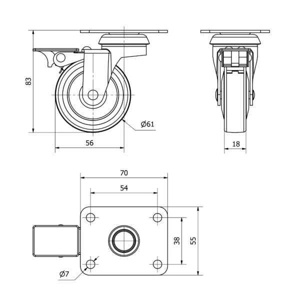 Rueda goma giratoria con freno Alex diametro 60 mm. modelo TW0160
