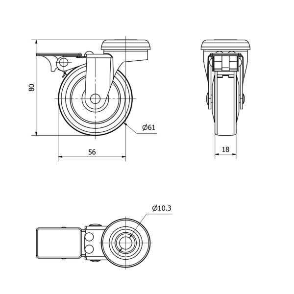 Rueda goma giratoria con freno Alex diametro 60 mm. modelo TW0163 EAN 8422202001630