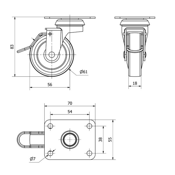 Rueda goma giratoria con freno Alex diametro 60 mm. modelo TW0192