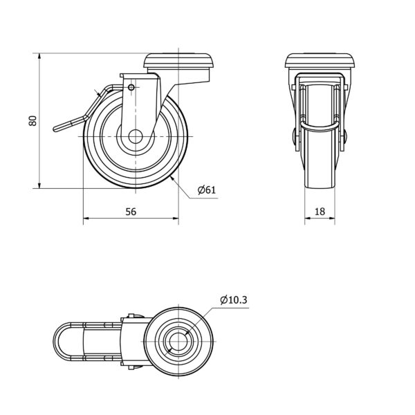 Rueda goma giratoria con freno Alex diametro 60 mm. modelo TW0193