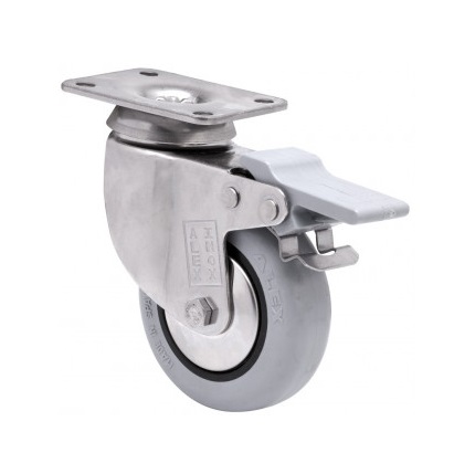 La serie de ruedas Alex BHI INOX-PGI son de goma gris inyectada, con todos sus componentes de acero inoxidable (AISI-304), indicadas para soportar cargas hasta 60 Kg. Se utilizan en exteriores, carros de transporte de alimentación, cantinas, comedores, restaurantes, empresas de alimentación, máquinas de embalajes y cintas transportadoras. PGI: No ralla el suelo. Silenciosa y no deja huella.