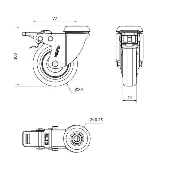 Rueda goma giratoria con freno Alex diametro 80 mm. modelo 2-3047