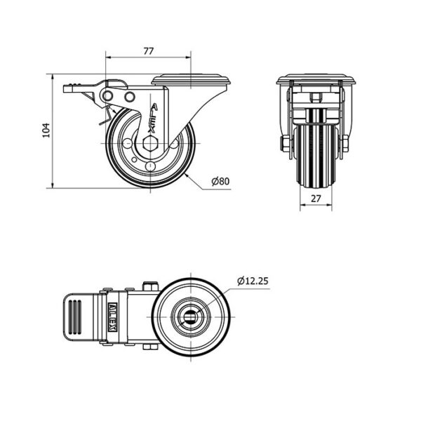 Rueda goma giratoria con freno Alex diametro 80 mm. modelo 2-4087