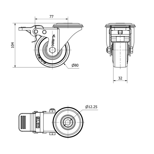 Rueda goma giratoria con freno Alex diametro 80 mm. modelo 2-4094