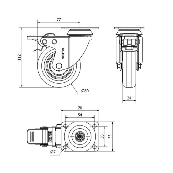 Rueda goma giratoria con freno Alex diametro 80 mm. modelo 2-5147