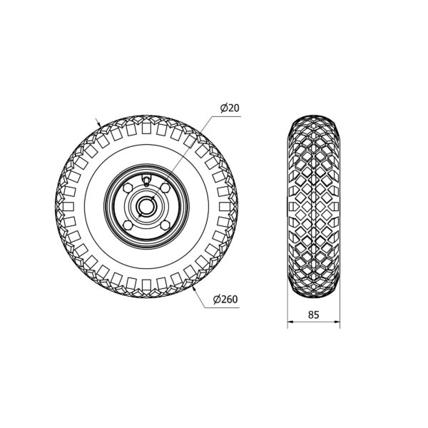 Rueda neumatica aro suelto Alex diametro 260 mm. modelo 4-1637