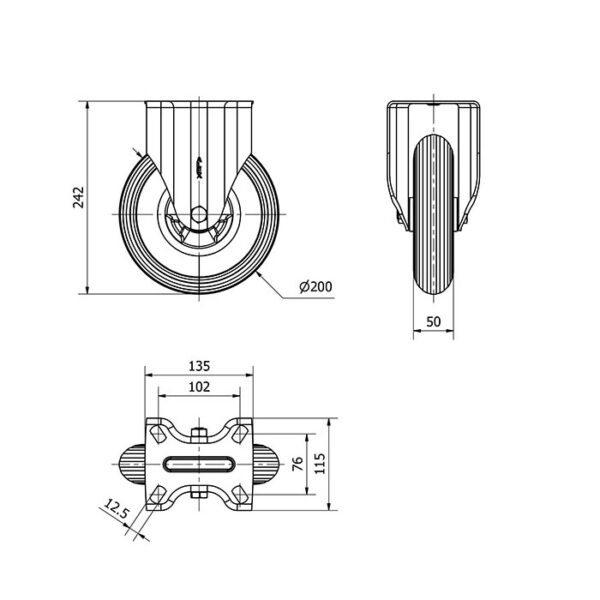 Rueda neumatica fija Alex diametro 200 mm. modelo 2-1109